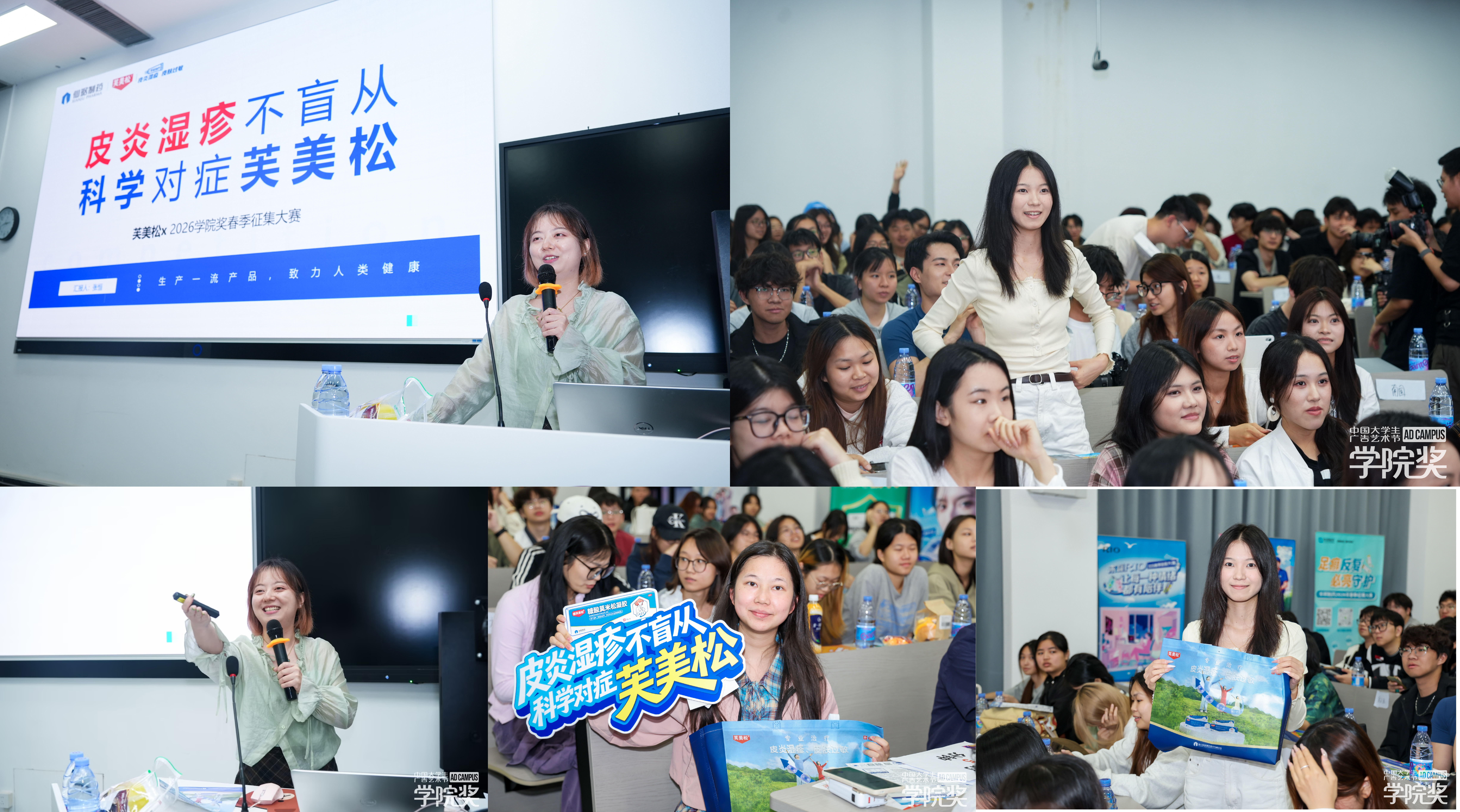 活动现场,浙江仙琚制药OTC市场部产品经理张恒以极具代入感的大学场景切入,瞬间拉近了与学生的距离。围绕“皮炎湿疹不盲从,科学对症芙美松”的主题,她用年轻人听得懂的语言,打破皮肤病和皮炎湿疹用药的常见误区,阐释了芙美松作为皮炎湿疹一线用药的专业地位与剂型优势,以科学的配比守护青年皮肤的美丽状态。