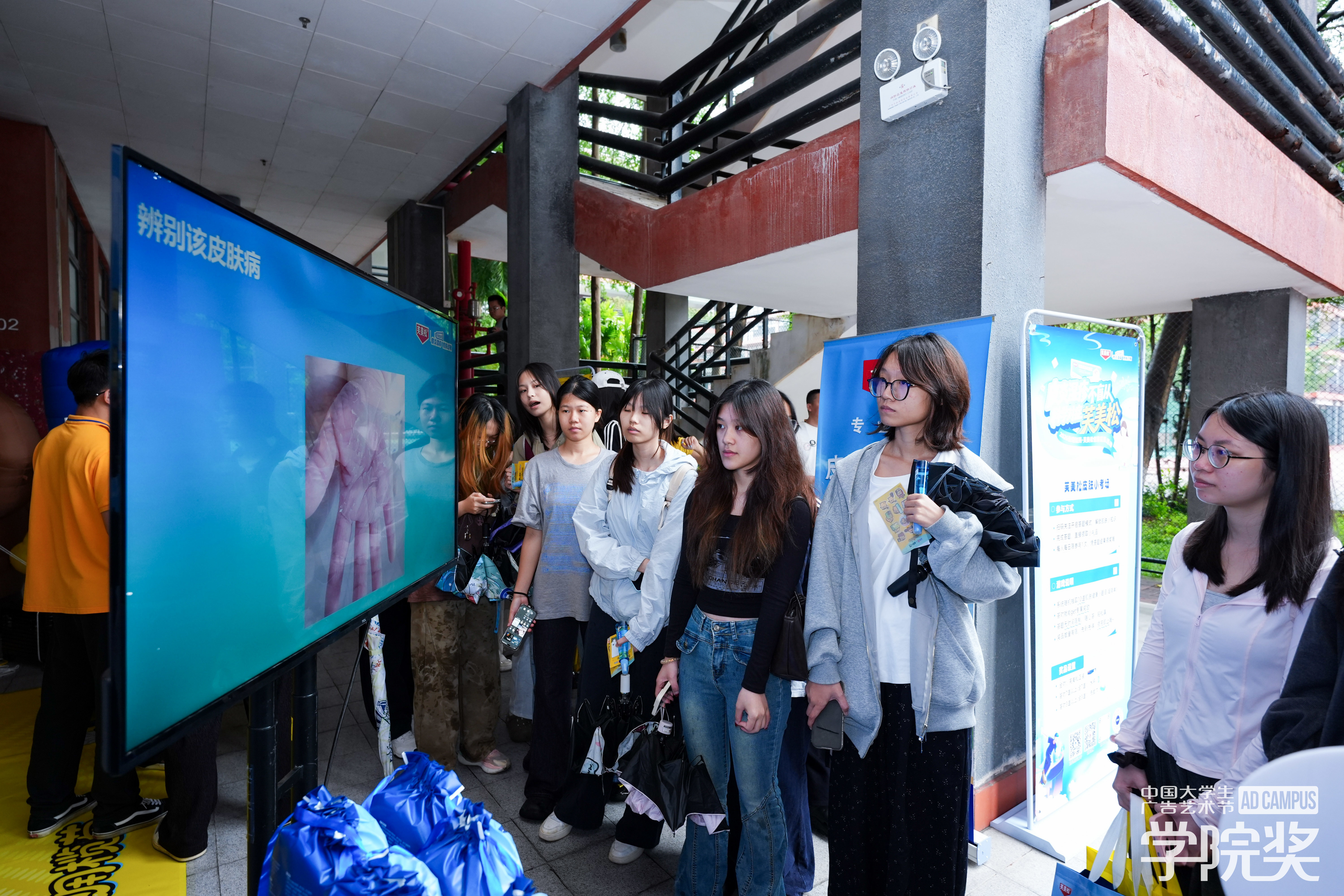 现场还特别设计了一个电视科普问答的游戏,学生们踊跃参加,在游戏中了解科学护肤的知识。在这里,“美”不只是艺术创作的表达,还是科学守护的健康皮肤状态。
