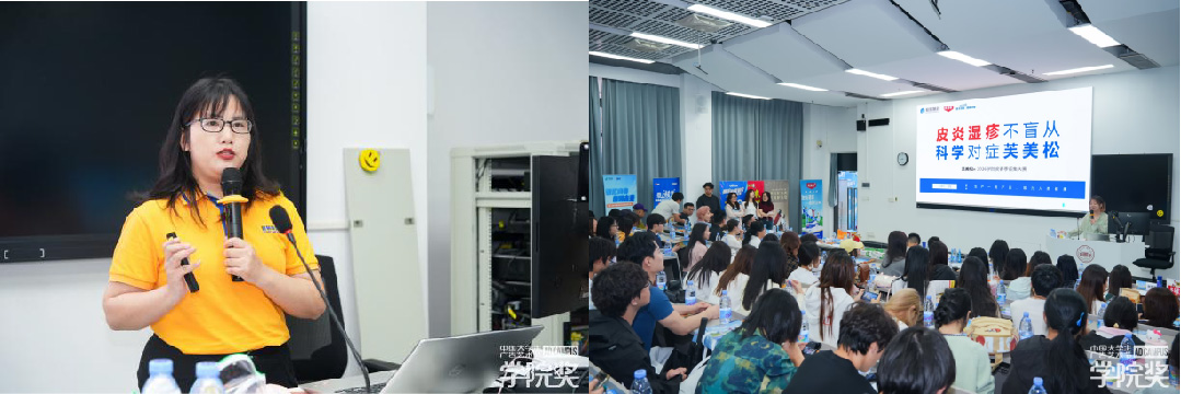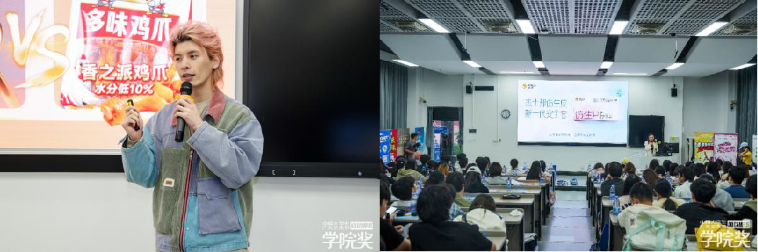 此次巡讲活动得到了多家命题企业的鼎力支持,榄菊日化集团品类经理梁瑜琳女士、仙琚制药OTC市场部产品经理张恒女士、至止品牌经理梅春树女士、香港澳美制药零售市场部产品策划经理时晨阳先生、江苏香之派食品有限公司总经理许大青先生及杰士邦产品经理刘慕言女士等企业代表现场参与。他们为同学们带来了深入浅出的命题解析、生动鲜活的创意分享,以及宝贵的实践创作经验和优秀案例。这些精彩纷呈的内容不仅拓宽了学生的专业视野,更激发了他们的创作灵感与热情。