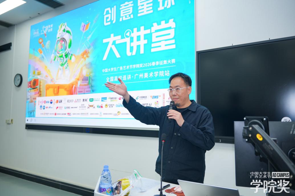4月23日,大学生广告艺术节学院奖 2026 春季征集大赛・创意星球大讲堂走进广州美术学院。在春意盎然的校园里,一场汇聚创意、教育与产业的青春盛宴正式启幕,以产教融合之力,为青年创意人才成长赋能。