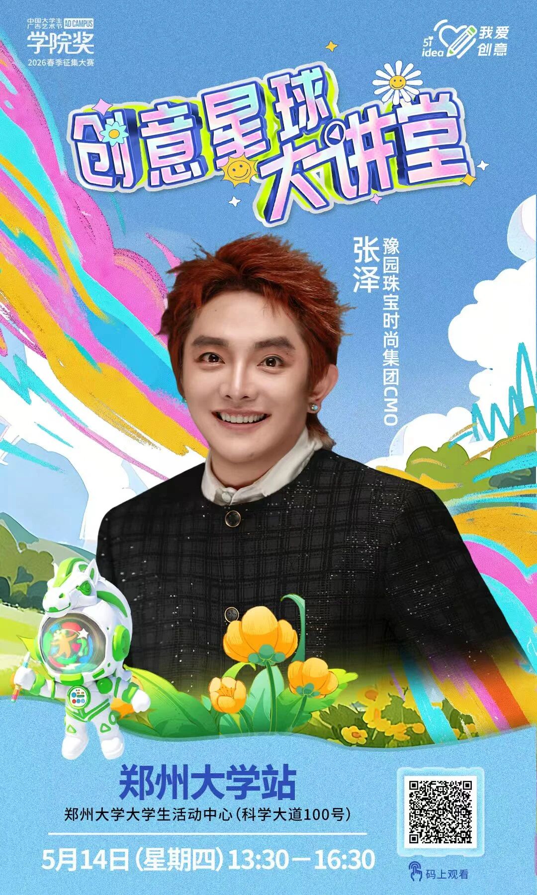 巡讲预告 | 5月14日,创意星球大讲堂郑州大学站开讲!
