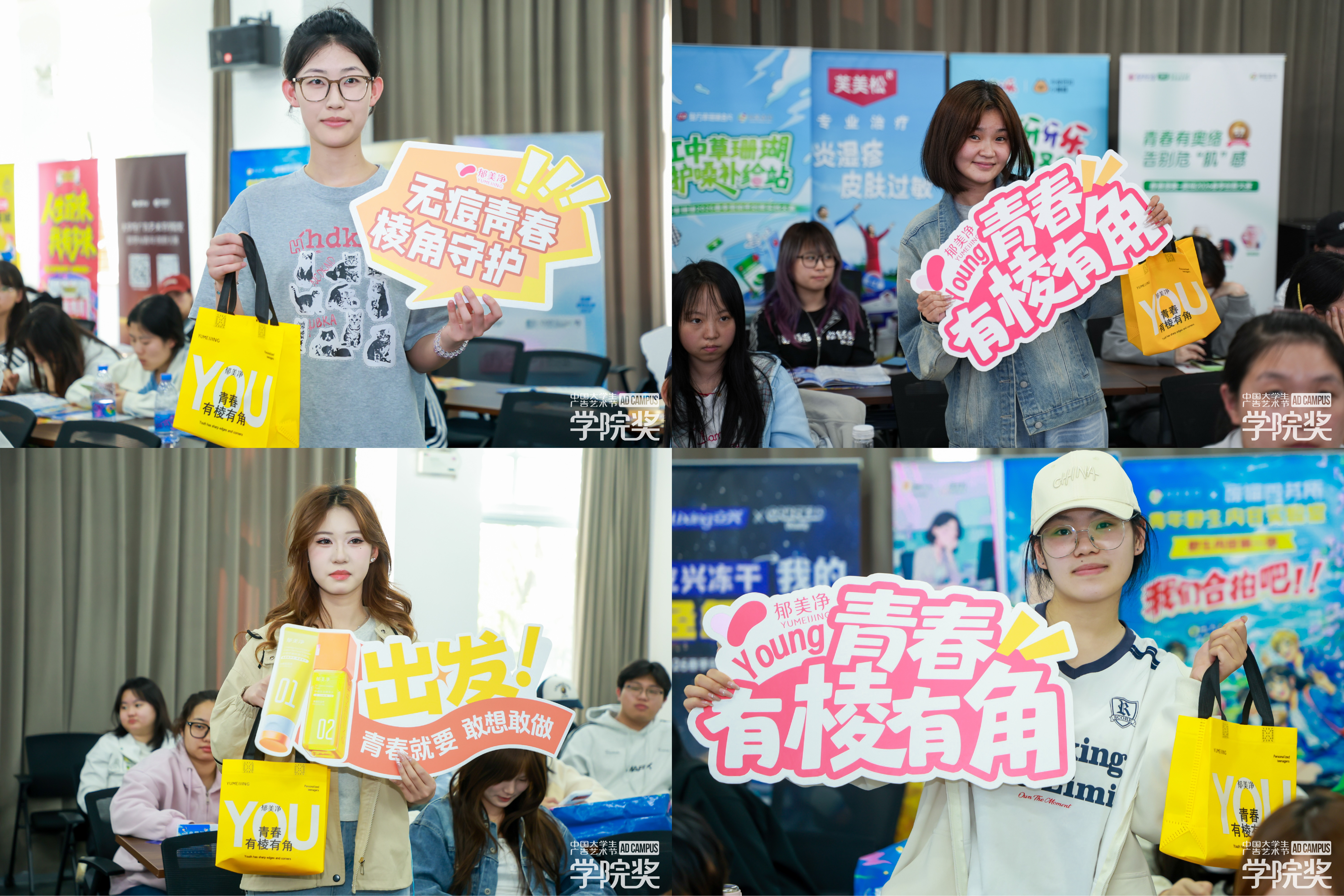 宣讲中,品牌代表抛出命题相关问题,同学们纷纷举手抢答。同学们争相分享“棱角青春”故事,和自己对于棱角的理解:坚持热爱、用镜头表达、创意种草……品牌方为互动同学送上产品大礼包,现场掌声与笑声此起彼伏。