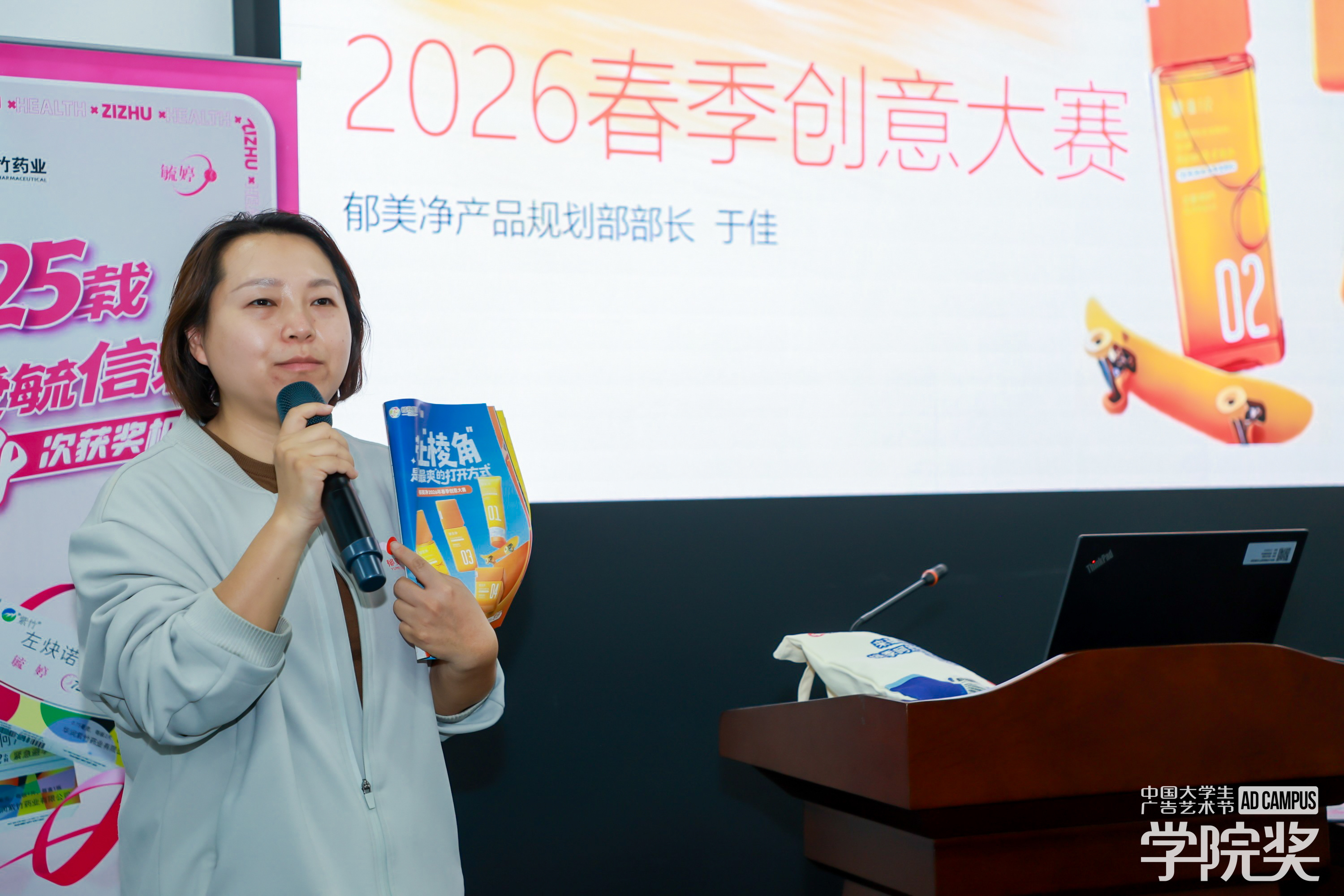 南开大学站,郁美净品牌代表于佳女士,登台开讲 “带上棱角,是青春最爽的打开方式”,带领全场回顾郁美净 47年国货历史、700余项专利,引用董事长蒋炜金句:“棱角是最原始的生命力”,重磅发布5大命题方向,鼓励学子用创意诠释青春棱角。