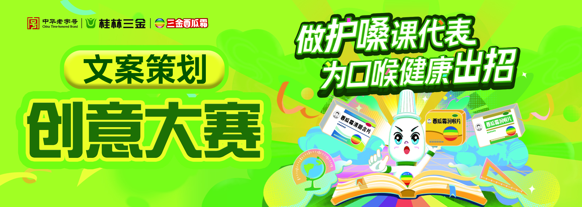 2.参赛作品需要露出三金西瓜霜品牌logo、产品包装、桂林三金企业logo(作为可选项)。