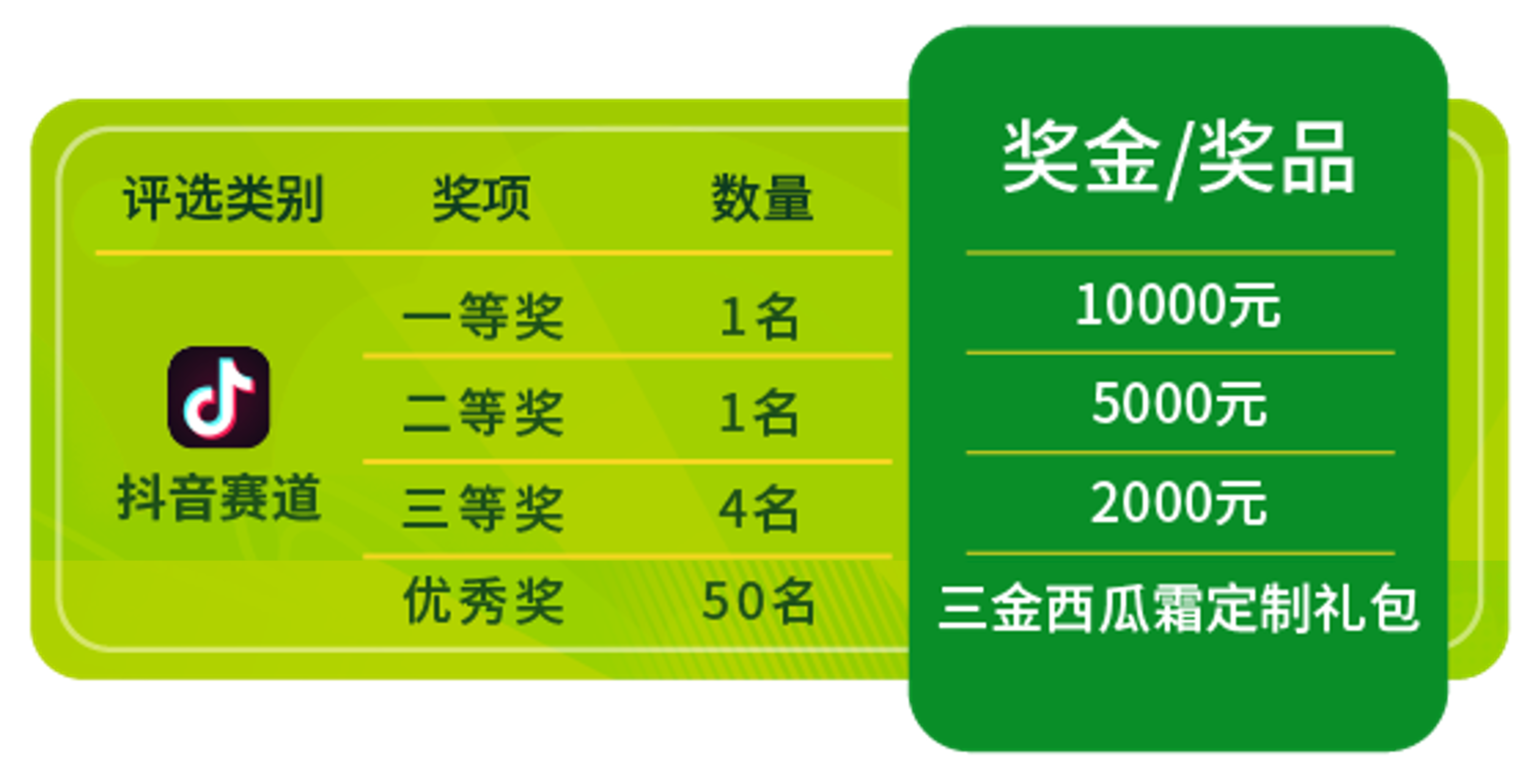 除正常参评学院奖各类别评选外,平面广告/短视频/活动策划/种草图文/综合设计均还能角逐企业特别设立的“三金西瓜霜传播创意奖”,该奖项分设抖音赛道,将综合互动数据及作品质量进行评比(互动数据占比60%,作品创意占比40%),为创作者提供额外三金西瓜霜抖音传播大奖,参赛同学将创作的三金西瓜霜短视频类作品或创作过程vlog@三金西瓜霜,并带话题#西瓜霜助力教师爽快开讲 #三金西瓜霜 #西瓜霜出招护嗓有花招 #西瓜霜清咽含片发布至个人抖音账号,并将链接回传至学院奖作品提交页指定位置,可参与“三金西瓜霜抖音人气奖”评选。(详细参赛规则以组委会实际通知为准。)