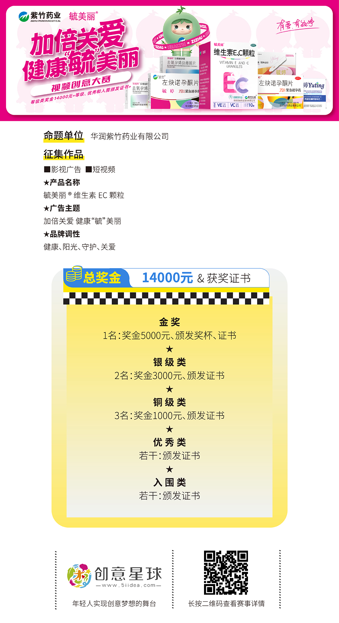 视频创意大赛总奖金为14000元,具体奖项设置如下: