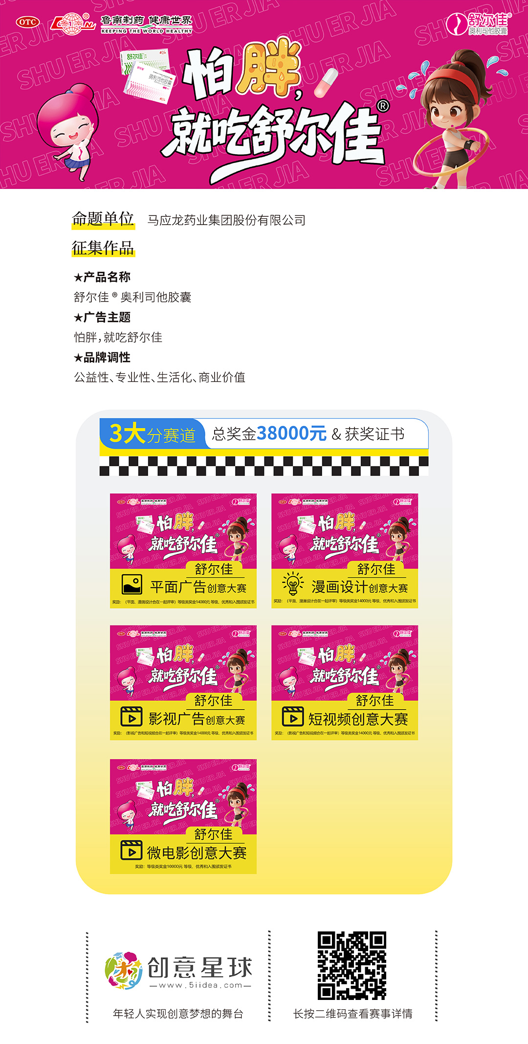 1.所有作品需体现舒尔佳®奥利司他胶囊logo、产品及佳佳玩偶形象(根据创作需求至少要添加任意其一)。