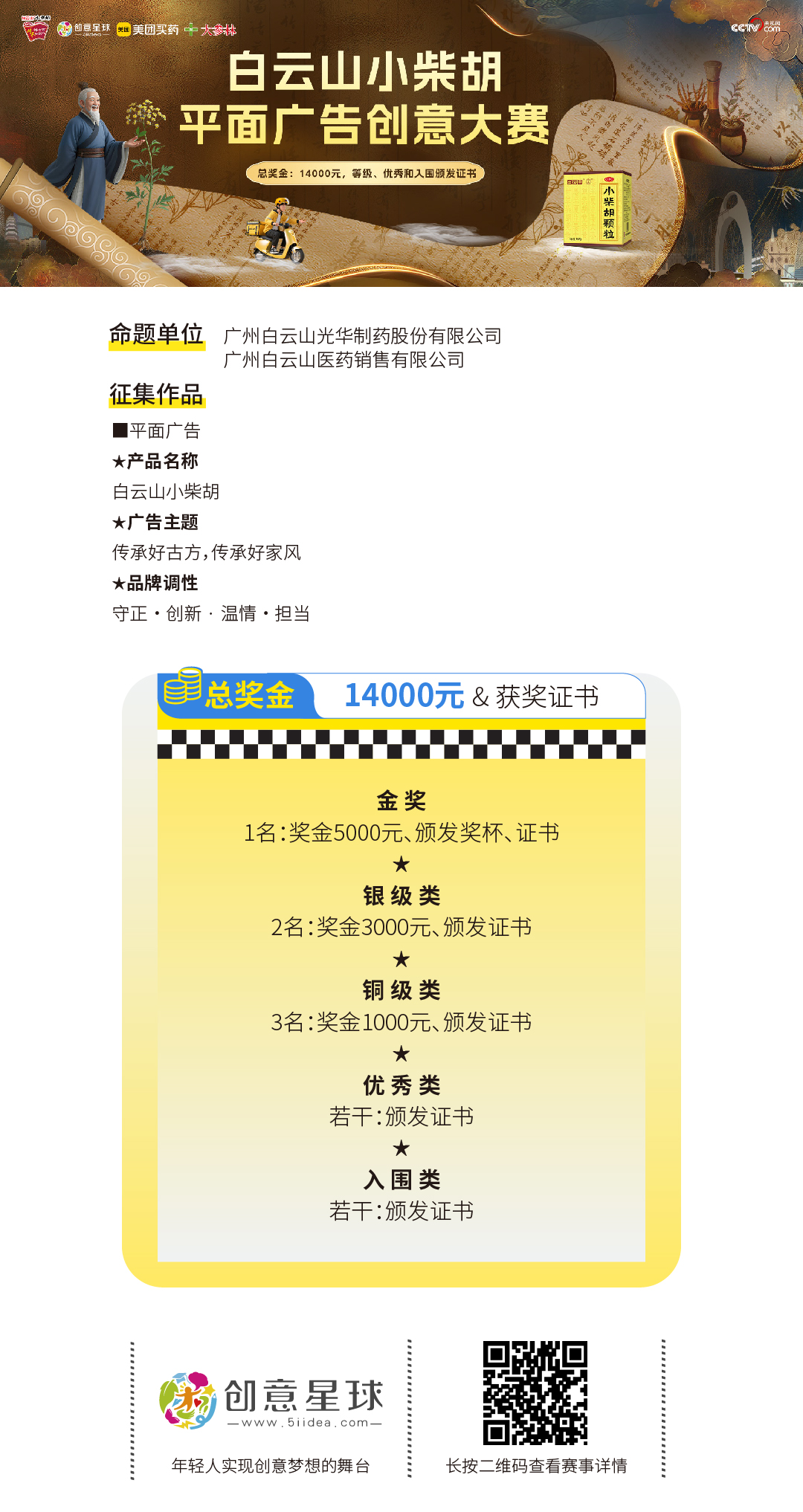 3、主题不限,但需围绕白云山小柴胡“传承好古方,传承好家风”核心命题展开构思,单幅作品主题清晰,系列作品需保持逻辑连贯;
