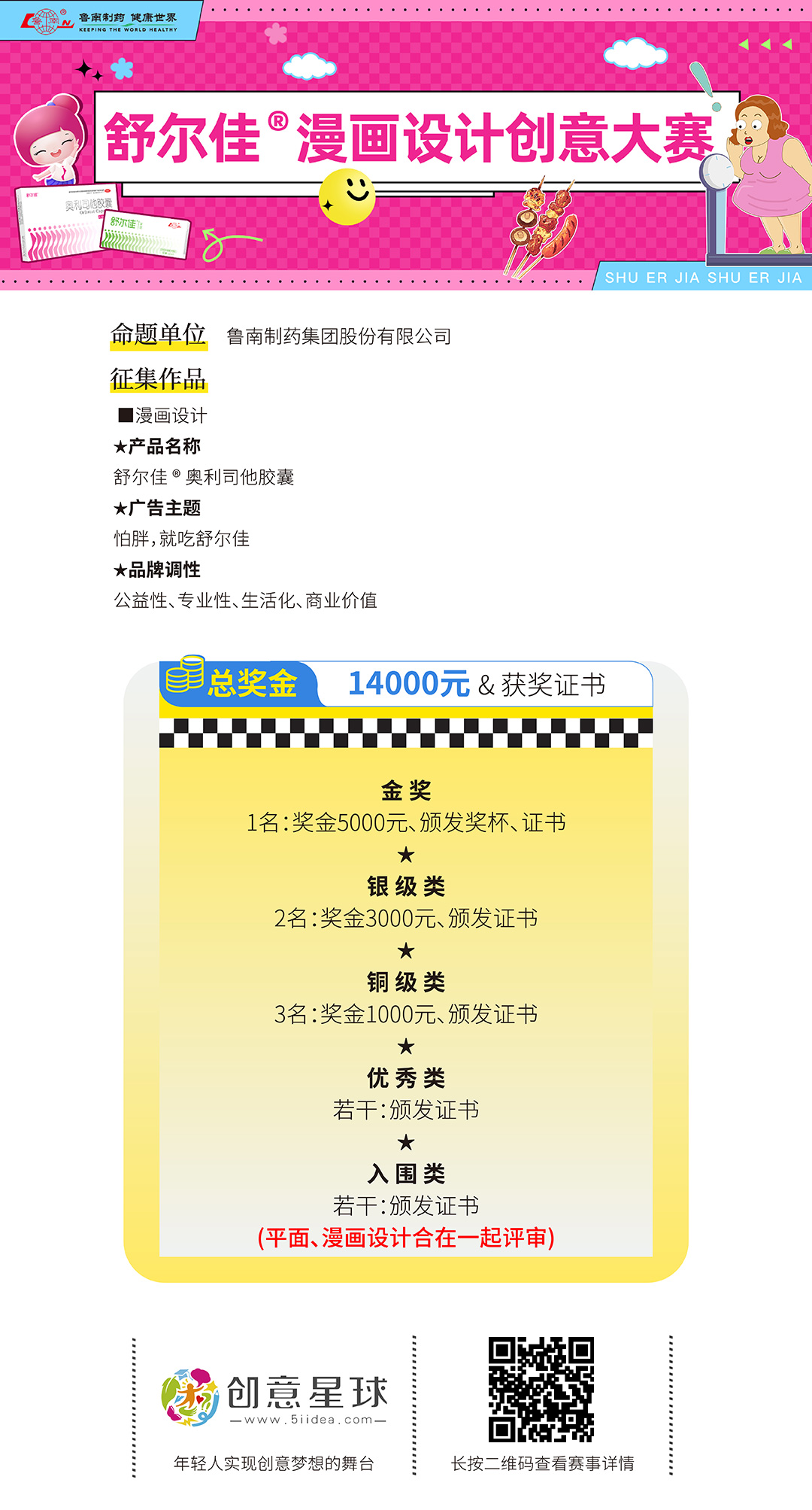 1.所有作品需体现舒尔佳®奥利司他胶囊logo、产品及佳佳玩偶形象(根据创作需求至少要添加任意其一)。