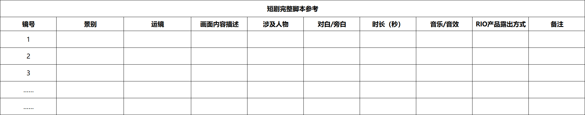 围绕“活力”“释放”等产品场景与真实的青年生活场景,以充满代入感、节奏感,反转意外又合理的剧情,呈现一段短剧中的核心情节。作品须自然露出RIO强爽。